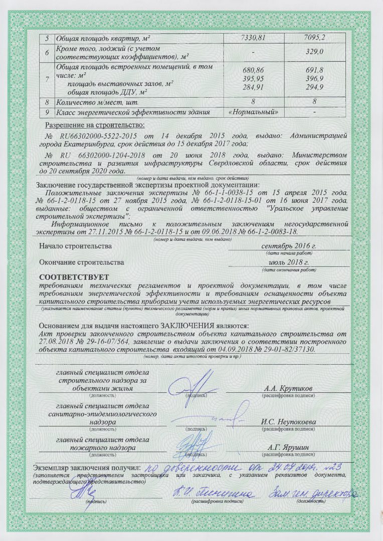 Получено заключение о соответствии построенного объекта капитального строительства проектной документации